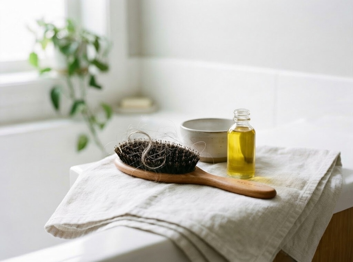 ある朝、洗面所の鏡の前で髪をとかしながら、